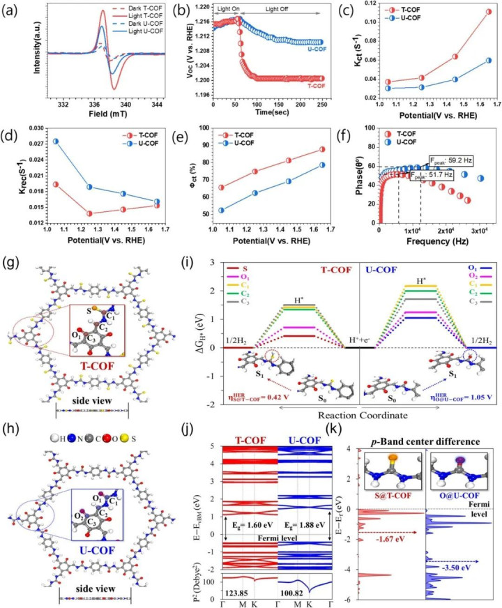 通过构建T-COF(含硫)和U-COF(含氧)的精确理论模型(图g-h),研究不仅验证了实验合成的材料结构合理性,更从原子尺度揭示了硫修饰的关键作用机制。