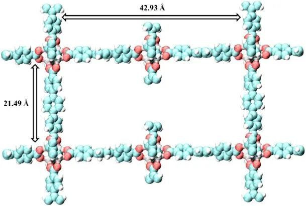 COF的孔道结构丰富多样,具有明确的孔道形状和尺寸分布。理论计算可精确预测COF的孔道结构参数,如孔径大小、孔壁粗糙度和孔道连通性。常见的COF孔道形状有圆形、六边形、四边形等,孔径范围涵盖微孔(小于2nm)到介孔(2-50nm)。